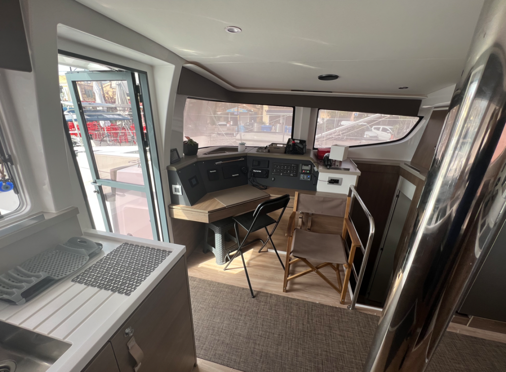 Katamaran Bali 4.4 Bali 4.4, Baujahr 2023, liegt im Lefkas main port, Ionisches Meer, Griechenland vor Anker. Es verfügt über 4 + 1 Kabinen und bietet Platz für 8 + 1 + 1 Personen mit 4 + 1 Toiletten. Bettwäsche und Küchenausstattung sind im Preis inbegriffen.