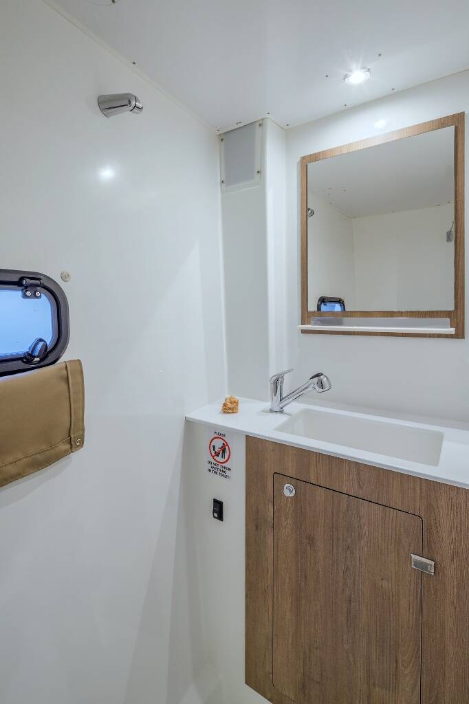 Katamaran Bali Catspace Sole Mio, Baujahr 2022, liegt im Athens, Attica, Nea Peramos Marina, Athens area/Saronic/Peloponese, Griechenland vor Anker. Es verfügt über 4 Kabinen und bietet Platz für 8 + 2 Personen mit 4 Toiletten. Bettwäsche und Küchenausstattung sind im Preis inbegriffen.