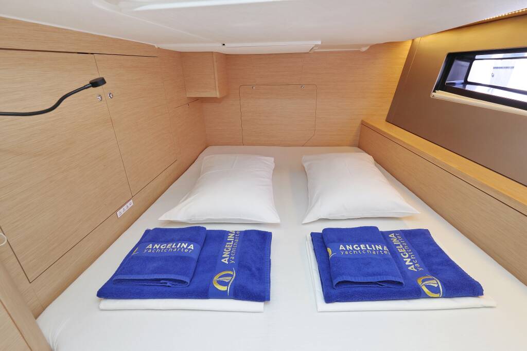 Segelyacht Dufour 44 Jazz, Baujahr 2025, liegt im Marina Kremik, Primosten, Sibenik & Umgebung, Kroatien vor Anker. Es verfügt über 4 Kabinen und bietet Platz für 8 + 2 Personen mit 4 Toiletten. Bettwäsche und Küchenausstattung sind im Preis inbegriffen.