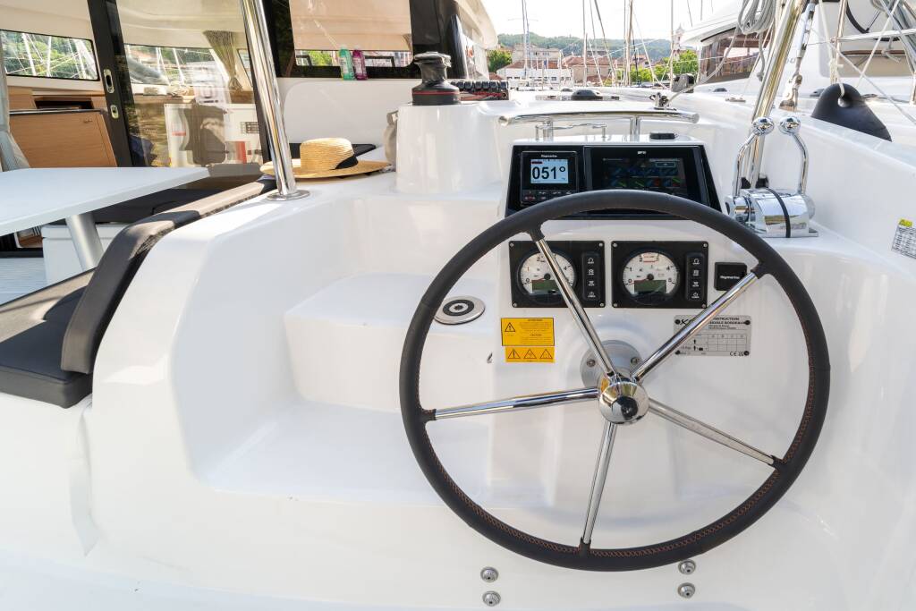 Katamaran Excess 11 First Sight, Baujahr 2023, liegt im ACI Marina Skradin, Sibenik & Umgebung, Kroatien vor Anker. Es verfügt über 4 + 2 Kabinen und bietet Platz für 8 + 2 Personen mit 2 + 1 Toiletten. Bettwäsche und Küchenausstattung sind im Preis inbegriffen.