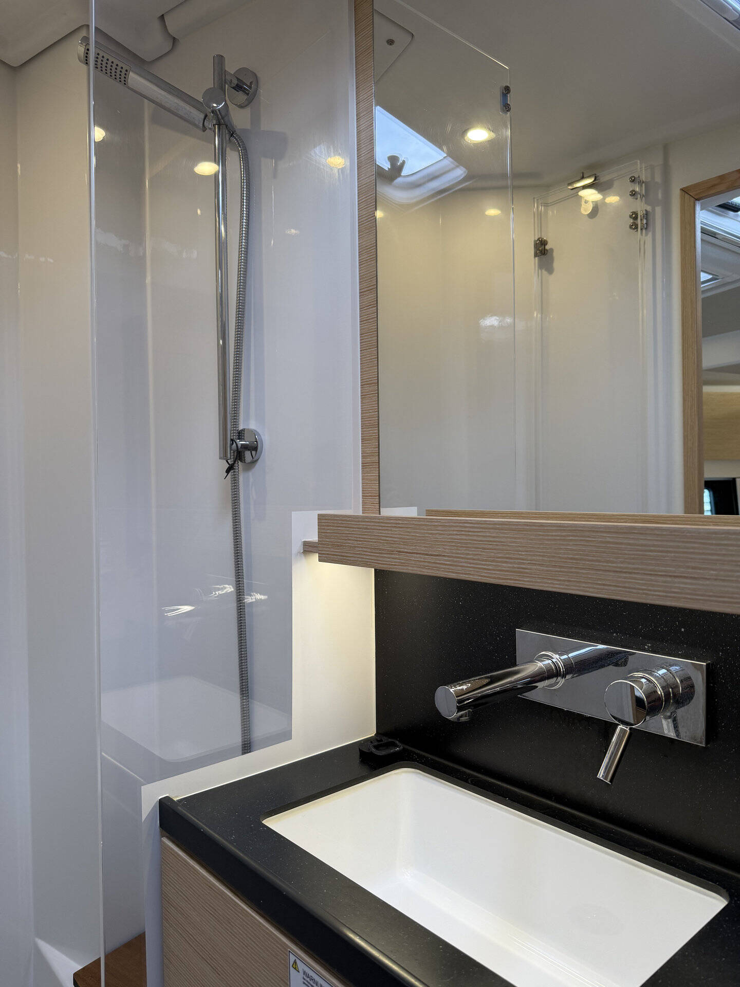 Zwei Steuermannsitze, Teak auf den Steuermannsitzen, GFK Steuerräder, Lewmar elektrische Fallwinschen, 2. Kartenplotter 9", Genuaschinen, Lazy-Bag und Lazy-Jack, Wetbar mit Grill und Spüle, Fußstützen für Steuermann, Mittelklampen, Elektr. Ankerwinde 1000 W mit Sicherungsautomat und Fernbedienung, Luken für beide Achterkabinen, Dusche im Cockpit (Warm-/Kaltwasser), Komposit-Bugspriet mit integriertem Anker und Vorstagbeschlag, Cockpittische aus Edelstahl mit Teakplatten, Bug- und Heckkorb, Abgedeckte Fallen ins Cockpit, Fußbodenbeleuchtung im Cockpit + Niedergang + Salon, 2 Lüfter für Aufbauluken, Indirekte Beleuchtung in Salon + Kabinen, LED Deckenbeleuchtung in Salon und Kabinen (dimmbar) Scenario Licht System - Touch Screen Controller und Dimmer in Salon und Vorschiffskabine, Rolloset mit Fliegengitter für Decksluken, Rollos für Rumpffenster, Faltplissees für seitliche Kajütdachfenster, LED TV-Flachbildschirm im Salon mit TV Lift-System im Salon