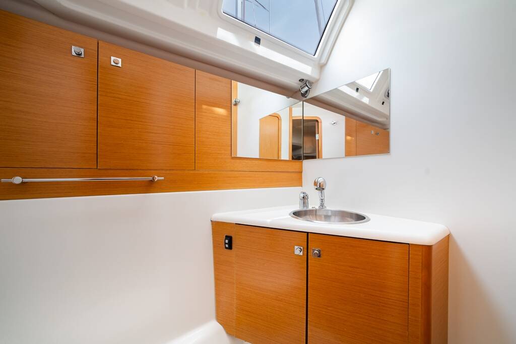 Segelyacht Jeanneau 53 Regina V, Baujahr 2010, liegt im Lavrion, main port, Athens area/Saronic/Peloponese, Griechenland vor Anker. Es verfügt über 5 + 1 Kabinen und bietet Platz für 10 + 2 + 1 Personen mit 3 + 1 Toiletten. Bettwäsche und Küchenausstattung sind im Preis inbegriffen.