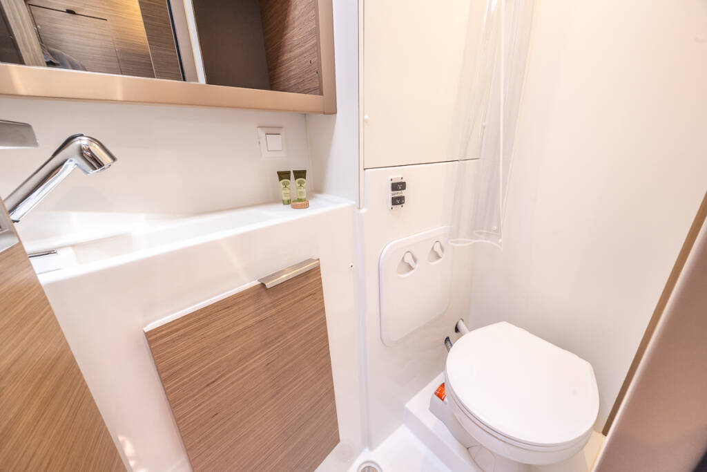 Katamaran Lagoon 40 Deva, Baujahr 2025, liegt im Lefkas main port, Ionisches Meer, Griechenland vor Anker. Es verfügt über 4 + 2 Kabinen und bietet Platz für 8 + 2 + 2 Personen mit 4 + 1 Toiletten. Bettwäsche und Küchenausstattung sind im Preis inbegriffen.