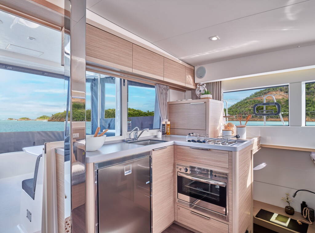 Katamaran Lagoon 40 Pussycat, Baujahr 2025, liegt im Marina Kastela, Split & Umgebung, Kroatien vor Anker. Es verfügt über 4 + 2 Kabinen und bietet Platz für 8 + 2 + 2 Personen mit 4 Toiletten. Bettwäsche und Küchenausstattung sind im Preis inbegriffen.