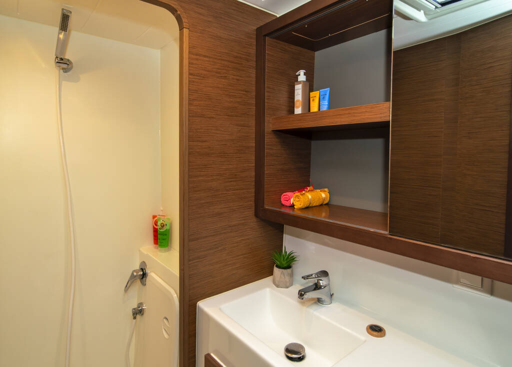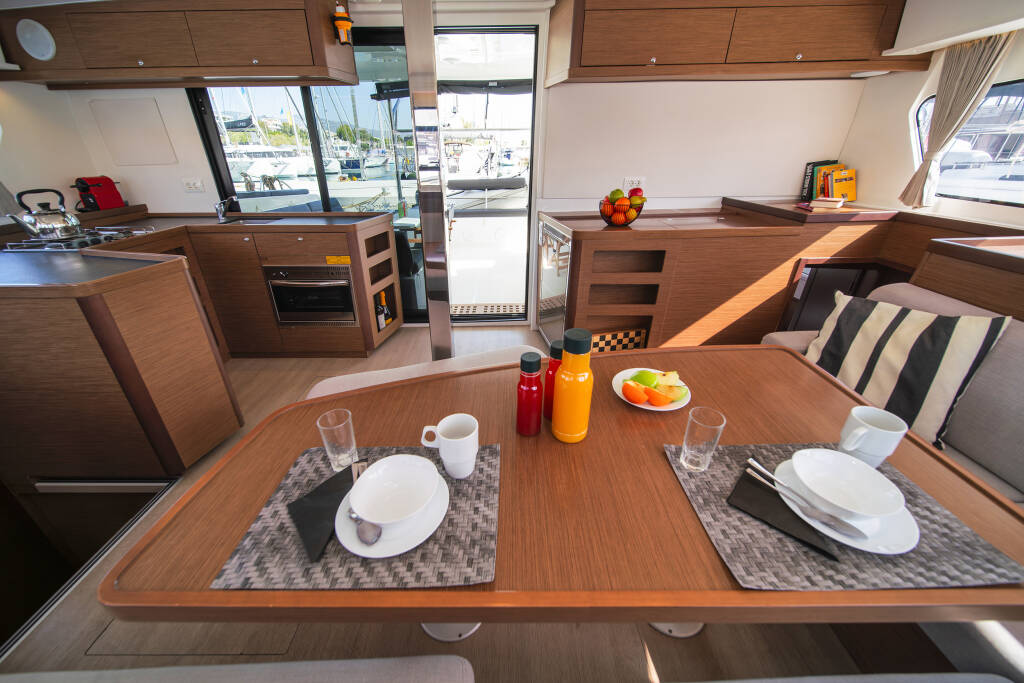 Katamaran Lagoon 42 Karteria, Baujahr 2021, liegt im Athens, Alimos marina, Athens area/Saronic/Peloponese, Griechenland vor Anker. Es verfügt über 4 + 2 Kabinen und bietet Platz für 8 + 2 Personen mit 4 + 1 Toiletten. Bettwäsche und Küchenausstattung sind im Preis inbegriffen.