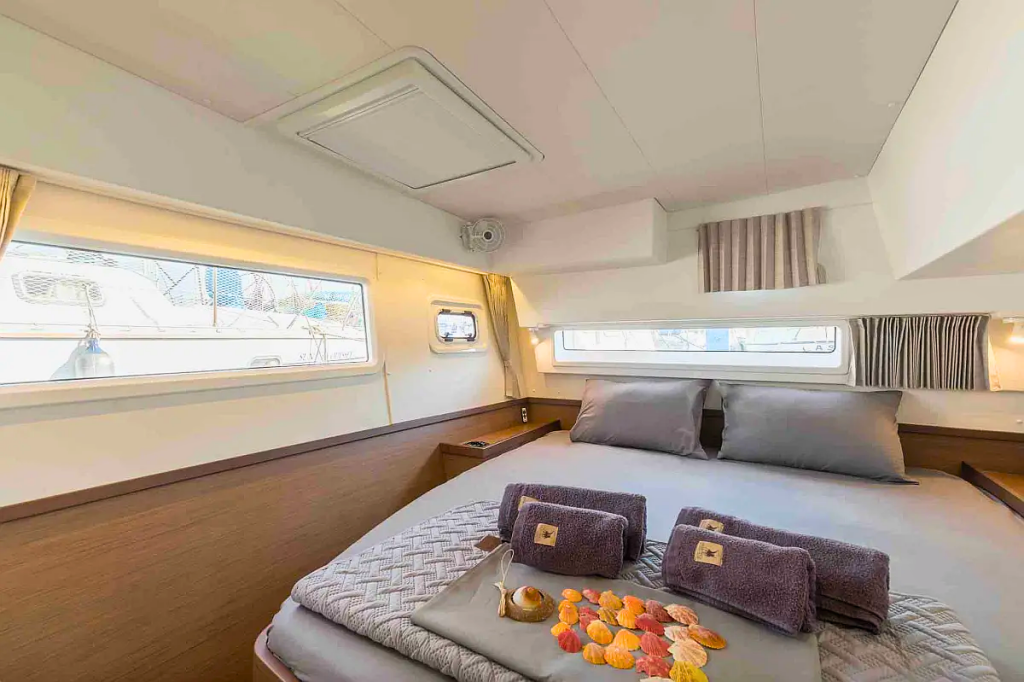 Katamaran Lagoon 42 Rosa Dei Venti, Baujahr 2021, liegt im Paros, Kykladen, Griechenland vor Anker. Es verfügt über 4 + 1 Kabinen und bietet Platz für 8 + 1 Personen mit 4 Toiletten. Bettwäsche und Küchenausstattung sind im Preis inbegriffen.