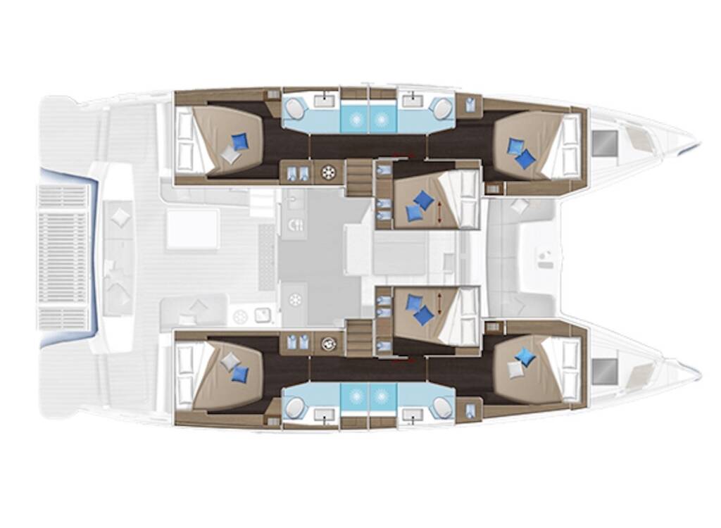 Die Kabine auf der linkte Seite, in der Mitte unter dem Salon, ist für den Skipper reserviert. NUR wenn der Kunde mit dem Skipper an Bord am Tag der Charter einigen Änderungen zustimmt, können wir dies als Charterunternehmen akzeptieren.