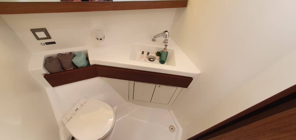 Segelyacht Oceanis 46.1 Dommie, Baujahr 2024, liegt im ACI Marina Split, Split & Umgebung, Kroatien vor Anker. Es verfügt über 5 Kabinen und bietet Platz für 10 + 2 Personen mit 3 Toiletten. Bettwäsche und Küchenausstattung sind im Preis inbegriffen.