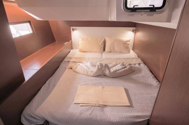 Segelyacht Oceanis 51.1 Brando, Baujahr 2019, liegt im Lefkas, D-Marin, Ionisches Meer, Griechenland vor Anker. Es verfügt über 5 + 1 Kabinen und bietet Platz für 10 + 1 Personen mit 3 + 1 Toiletten. Bettwäsche und Küchenausstattung sind im Preis inbegriffen.
