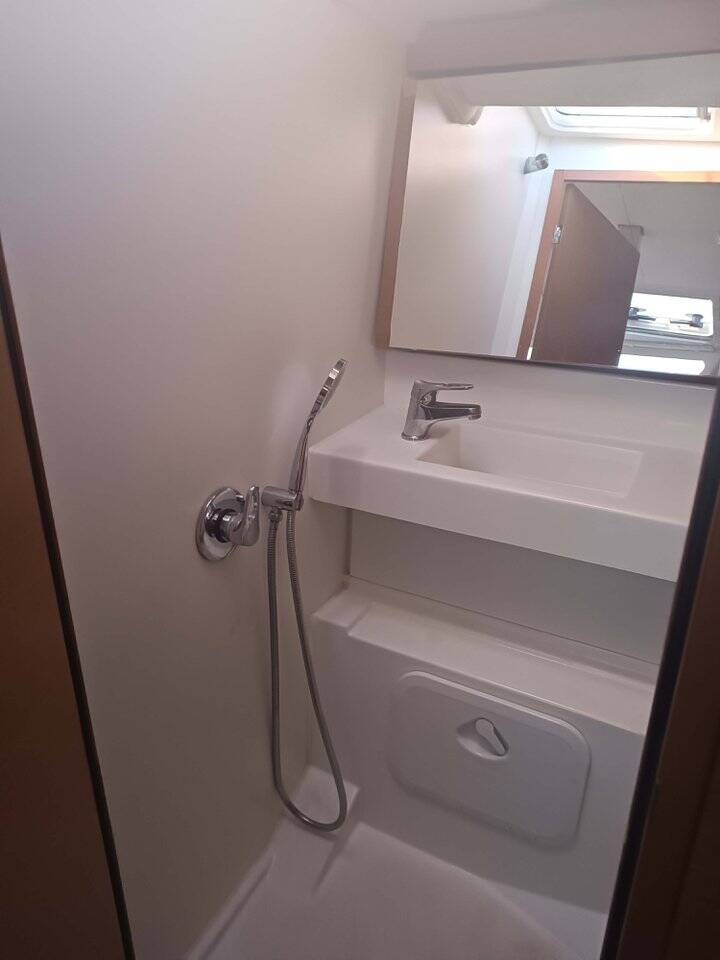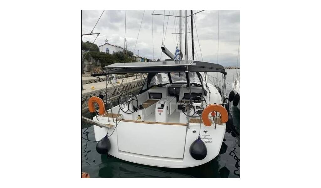 Segelyacht Sun Odyssey 440 Apollonas, Baujahr 2020, liegt im Corfu, Gouvia Marina, Ionisches Meer, Griechenland vor Anker. Es verfügt über 4 Kabinen und bietet Platz für 8 + 2 Personen mit 2 Toiletten. Bettwäsche und Küchenausstattung sind im Preis inbegriffen.