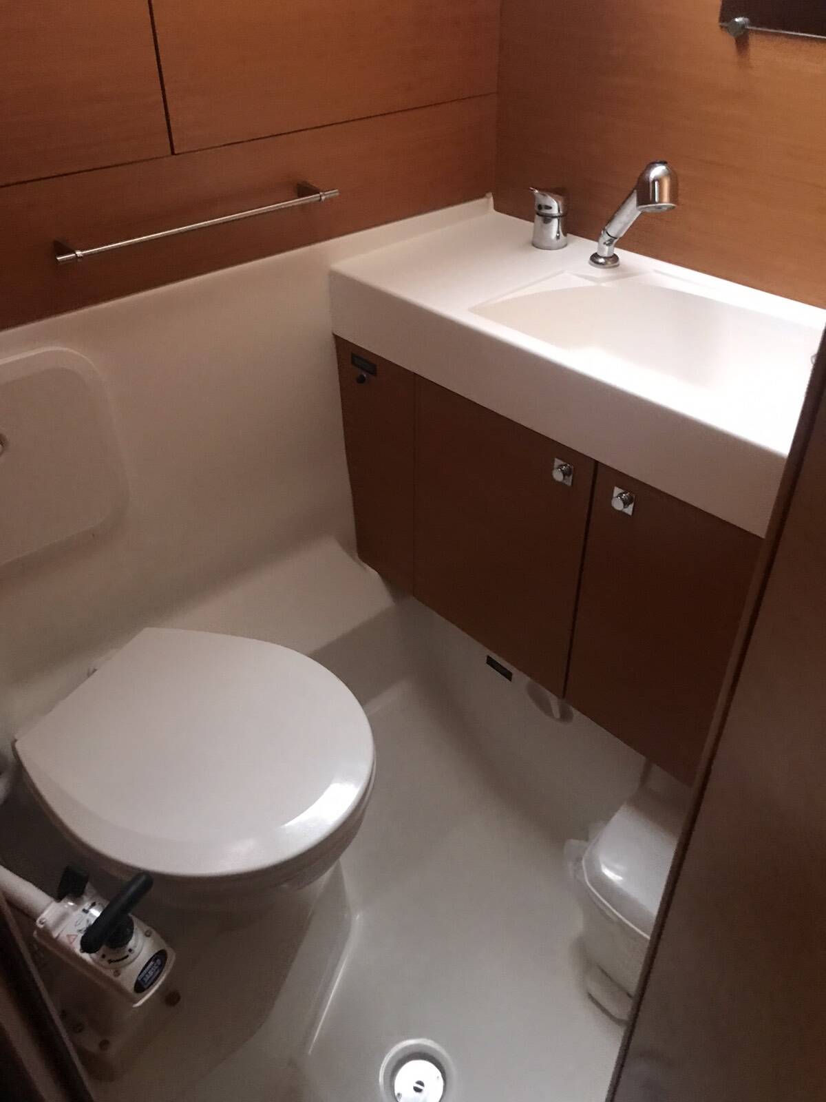 Segelyacht Sun Odyssey 469 Eva, Baujahr 2015, liegt im Volos, Skiathos/Sporades, Volos, Griechenland vor Anker. Es verfügt über 4 Kabinen und bietet Platz für 8 + 2 Personen mit 4 Toiletten. Bettwäsche und Küchenausstattung sind im Preis inbegriffen.