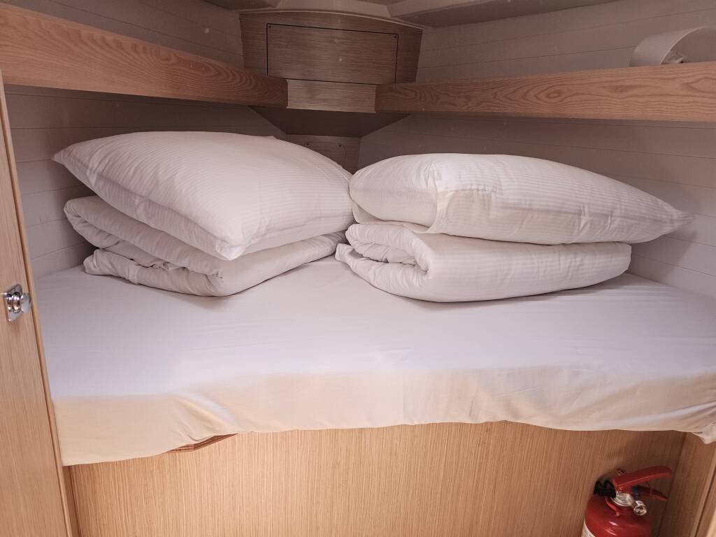 Bavaria Cruiser 34 Ella 16/05/2026 - 23/05/2026 Home Back to Search Results Bavaria Cruiser 34 Ella Sailing yacht Bavaria Cruiser 34 Ella, built in 2025 is anchored in the Marina Kornati, Biograd, Zadar region, Croatia. It has 3 cabins, can accommodate 6 + 2 people and has 1 toilets. Bed linen and kitchen equipment are included in the price. Download PDF Yacht ID 6915 Charter Bases Marina Kornati, Biograd, Croatia Charter Types Sailing yacht Yacht brand Bavaria Yacht Model Bavaria Cruiser 34 Yacht name Ella Production year 2025 Number of rudder blades 1 Length 33 ft Beam 11 ft Draft 1.58 m Engine 1 x 28 hp Cabins 3 Berths 6 + 2 Max Persons 8 WC/Shower 1 Fuel tank 150 l Water tank 150 l Equipment Entertainment Audio pack TV Wi-Fi Internet Galley Coffee machine Ice maker Navigation Autopilot Bow thruster Wind instrument/Anemometer Windex Safety VHF radio Yacht electrics Air Conditioning Heating Inverter Solar panels Watermaker - desalinator Services Charter package (Obligatory) 260 € includes: final cleaning, divers inspection, gas, bed linen, check in and check out service, dinghy, basic package for toilets and kitchen, unlimited WiFi on boat, cockpit cushions - Payable at the base per booking WI-FI Internet connection on boat (Obligatory) 0 € included in price, UNLIMITED - Payable at the base per booking Comfort pack 380 € 2,5hp, (2 weeks: 520 EUR, 3 Weeks: 620 EUR) Includes: charter package, outboard engine 2,5hp, dinghy, 1 stand up paddle (sup), set towels( 1 small and 1 large/per person) - Payable at the base per booking Comfort pack 400 € 6hp, (2 weeks: 540 EUR, 3 Weeks: 680 EUR) Includes: charter package, outboard engine 6hp, dinghy, 1 stand up paddle (sup), set towels( 1 small and 1 large/per person) - Payable at the base per booking Early Check in 200 € from 12:00h - 15:00h LIMITED AVAILABILITY - Payable at the base per booking Hostess 180 € Payable at the base per day + food Parking 0 € private parking, price upon request - Payable at the base per booking Pet on board 200 € on request - Payable at the base per pet Priority check in 300 € from 10:00h - 11:30h LIMITED AVAILABILITY - Payable at the base per booking Skipper 200 € CHECK AVAILABILITY WITH THE BASE BEFORE CONFIRMATION - Payable at the base per day + food Transfer 100 € Airport Zadar - Marina Koranti (1-7 pax); with a van - Payable at the base one-way Transfer 230 € Airport Split - Marina Koranti (1 - 7 pax); with a van - Payable at the base one-way Additional Extras Automatic Inflatable Life Jacket 50 € in case of activation extra charge 100€ - Payable at the base per piece Beach towel 15 € Payable at the base per piece Coolbox 80 € 30 l - Payable at the base per booking Coolbox 100 € 50 l - Payable at the base per booking Coolbox 120 € 60 l - Payable at the base per booking Extra bedlinen 15 € Payable at the base per person Gennaker 0 € price upon request (order in advance; + 1000 EUR deposit) - Payable at the base per week Grill/Barbecue/Plancha 200 € €500 deposit - Payable at the base per week Outboard engine 80 € + outboard engine 2-4HP - Payable at the base per week Outboard engine 100 € + outboard engine 4,5-6HP - Payable at the base per week Railing net (Safety net) 150 € Payable at the base per week Snorkeling equipment 10 € Payable at the base per piece Stand up paddle (SUP) 70 € Payable at the base per week Stand up paddle (SUP) 130 € + outboard engine 2,5-4HP - Payable at the base per week Stand up paddle (SUP) 150 € + outboard engine -6HP - Payable at the base per week Towels 10 € 1 small + 1 large - Payable at the base per person Underwater scooter 250 € 450 EUR /2weeks, additional deposit 500 EUR - Payable at the base per week Yacht Base Marina Kornati, Biograd, Croatia April 2026 Calendar -34% 18.04. - 25.04.2026 951 € 1.430 € 25.04. - 02.05.2026 Send Inquiry May 2026 Calendar 02.05. - 09.05.2026 Send Inquiry 09.05. - 16.05.2026 Send Inquiry -30% 16.05. - 23.05.2026 1.540 € 2.200 € 23.05. - 30.05.2026 Send Inquiry 30.05. - 06.06.2026 Send Inquiry June 2026 Calendar -30% 06.06. - 13.06.2026 1.848 € 2.640 € -30% 13.06. - 20.06.2026 2.079 € 2.970 € 20.06. - 27.06.2026 Send Inquiry 27.06. - 04.07.2026 Send Inquiry July 2026 Calendar -30% 04.07. - 11.07.2026 2.387 € 3.410 € 11.07. - 18.07.2026 Send Inquiry 18.07. - 25.07.2026 Send Inquiry 25.07. - 01.08.2026 Send Inquiry August 2026 Calendar 01.08. - 08.08.2026 Send Inquiry -30% 08.08. - 15.08.2026 2.464 € 3.520 € -30% 15.08. - 22.08.2026 2.387 € 3.410 € -30% 22.08. - 29.08.2026 2.079 € 2.970 € 29.08. - 19.09.2026 Send Inquiry September 2026 Calendar 12.09. - 19.09.2026 Send Inquiry 19.09. - 26.09.2026 Send Inquiry 26.09. - 03.10.2026 Send Inquiry October 2026 Calendar 03.10. - 24.10.2026 Send Inquiry -34% 17.10. - 24.10.2026 878 € 1.320 € -34% 24.10. - 31.10.2026 878 € 1.320 € -30% 31.10. - 07.11.2026 924 € 1.320 € November 2026 Calendar -30% 07.11. - 14.11.2026 924 € 1.320 € -30% 14.11. - 21.11.2026 924 € 1.320 € -30% 21.11. - 28.11.2026 924 € 1.320 € -30% 28.11. - 05.12.2026 924 € 1.320 € December 2026 Calendar -30% 05.12. - 12.12.2026 924 € 1.320 € -30% 12.12. - 19.12.2026 924 € 1.320 € -30% 19.12. - 26.12.2026 924 € 1.320 € Price Summary Share on Facebook Share on X Share on LinkedIn Yacht rental price 0 € Discount 0% 0 € Discounted yacht price Not available Obligatory Extras - € Additional Extras Total 260 € Note: Services and Extra Equipment can also be selected on the Checkout Page. So be sure to click Book Now button if you want to include options we offer with this charter.