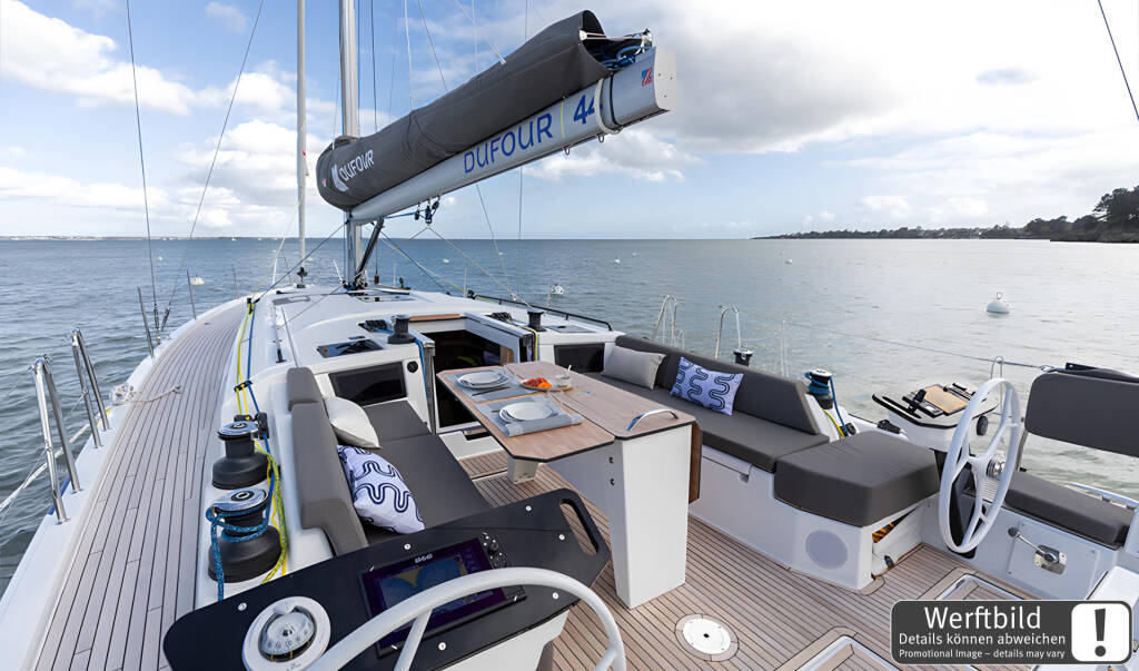Dufour 44 Gimme! Gimme! 16/05/2026 - 23/05/2026 Home Back to Search Results Dufour 44 Gimme! Gimme! Sailing yacht Dufour 44 Gimme! Gimme!, built in 2026 is anchored in the Palma de Mallorca, Marina Naviera Balear, Balearic Islands, Spain. It has 3 cabins, can accommodate 6 people and has 2 toilets. Bed linen and kitchen equipment are included in the price. Highlights Bowsprit, planch grill, cool box in cockpit table, reefing system led aft to the roof, electric anchor winch 2000W with remote control, inverter 2000W, genoa winches, gennaker equipment, 4 x TS0 winches on the coamings, adjustable genoa rail, German Mainsheet System Download PDF Yacht ID 8772 Charter Bases Palma de Mallorca, Marina Naviera Balear, Spain Charter Types Sailing yacht Yacht brand Dufour Yacht Model Dufour 44 Yacht name Gimme! Gimme! Production year 2026 Mast length 19.50 Length 46 ft Beam 15 ft Draft 2.20 m Engine 1 x 56 hp Cabins 3 Berths 6 WC/Shower 2 Fuel tank 250 l Water tank 250 l Equipment Additional Flag Comfort Cockpit cushions Deck Anchor light Anchor with chain Bathing platform Bimini top Boat hook Bosun's chair (Safe seat) (boatswain's chair) Cockpit grill Cockpit table Cockpit/stern, outside shower Deck brush Dinghy Electric anchor windlass Fenders Gangway Jerry cans for diesel Mooring ropes Pulpit seat Spare anchor (Reserve, Auxiliary anchor) Spotlight / Headlights Sprayhood Swimming ladder Teak cockpit Entertainment Outdoor speakers Radio Wi-Fi Internet Galley Hot water Kitchen utensils (Galley equipment, cutlery) Oven Pressurized water system Refrigerator Sink Stove Interior Clock Electric toilet Safe Yacht keys Navigation AIS Autopilot Binoculars Bow thruster Compass Depthsounder GPS chart plotter - cockpit Hand bearing compass Helm station Navigation (Nautical) charts and nautical guide Navigation/position Lights Speedometer (Speed log) Triangles Wind instrument/Anemometer Windex Safety Automatic Inflatable Life Jacket Black Water Tank Emergency tiller Fire extinguisher First aid kit Flashlight Fog horn Guard rail Horseshoe lifebuoy Lifelines Liferaft Set of tools VHF radio Wire (shroud) cutter Sails Lazy bag Lazy jacks Winch Yacht electrics 12V Socket 220V socket Battery charger Bilge pump - Electric Converter 230V/12V Heating Shore connection 220 V Shore power cable Services Base package (Obligatory) 500 € Cleaning, bed linen, towel set (1x small, 1x large), flushing set, WiFi, gas, dinghy & outboard engine - Payable at the base per booking Base package (Obligatory) 500 € Cleaning, bed linen, towel set (1x small, 1x large), flushing set, WiFi, gas, dinghy & outboard engine - Payable at the base per booking Damage waiver 300 € The damage waiver costs 300,00 €. The customers still have to deposit 500,00 €. If there is no damage, they get the 500,00 € back. Can be finalized by the customer on the base. We do not need any information in advance. - Payable at the base per booking Damage waiver 300 € The damage waiver costs 300,00 €. The customers still have to deposit 500,00 €. If there is no damage, they get the 500,00 € back. Can be finalized by the customer on the base. We do not need any information in advance. - Payable at the base per booking Early Check in 150 € at 12:00h (only on request); Payable in cash at the base - Payable at the base per booking Early Check in 150 € at 12:00h (only on request); Payable in cash at the base - Payable at the base per booking Hostess 1.750 € Free food, own cabin - Payable at the base per week Hostess 1.750 € Free food, own cabin - Payable at the base per week Pet on board 140 € on request only; Payable in cash at the base - Payable at the base per booking Pet on board 140 € on request only; Payable in cash at the base - Payable at the base per booking Skipper 2.100 € Free food, own skipper cabin - Payable at the base per week Skipper 2.100 € Free food, own skipper cabin - Payable at the base per week Additional Extras Beach towel 20 € Payable at the base per person Beach towel 20 € Payable at the base per person Gennaker 250 € For 1 week is 250,00€, for 2 weeks are 375,00€, for 3 weeks are 500,00€; (50% for the second and subsequent weeks) - Payable at the base per week Gennaker 250 € For 1 week is 250,00€, for 2 weeks are 375,00€, for 3 weeks are 500,00€; (50% for the second and subsequent weeks) - Payable at the base per week Grill/Barbecue/Plancha 100 € Danish Cobb Gas Grill (BBQ Grill), Payable in cash at base 50% second week] - Payable at the base per week Grill/Barbecue/Plancha 100 € Danish Cobb Gas Grill (BBQ Grill), Payable in cash at base 50% second week] - Payable at the base per week Snorkeling equipment 35 € diving mask and snorkel - Payable at the base per set Snorkeling equipment 35 € diving mask and snorkel - Payable at the base per set Stand up paddle (SUP) 100 € Payable in cash at the base 50% second week - Payable at the base per week Stand up paddle (SUP) 100 € Payable in cash at the base 50% second week - Payable at the base per week Yacht Base Palma de Mallorca, Marina Naviera Balear, Spain April 2026 Calendar 18.04. - 25.04.2026 Send Inquiry 25.04. - 02.05.2026 Send Inquiry May 2026 Calendar 02.05. - 09.05.2026 Send Inquiry 09.05. - 16.05.2026 Send Inquiry -25% 16.05. - 23.05.2026 3.225 € 4.300 € 23.05. - 30.05.2026 Send Inquiry -25% 30.05. - 06.06.2026 3.975 € 5.300 € June 2026 Calendar -25% 06.06. - 13.06.2026 3.975 € 5.300 € 13.06. - 20.06.2026 Send Inquiry -15% 20.06. - 27.06.2026 4.505 € 5.300 € -15% 27.06. - 04.07.2026 4.505 € 5.300 € July 2026 Calendar -15% 04.07. - 11.07.2026 4.973 € 5.850 € -15% 11.07. - 18.07.2026 4.973 € 5.850 € -15% 18.07. - 25.07.2026 4.973 € 5.850 € 25.07. - 01.08.2026 5.850 € August 2026 Calendar 01.08. - 08.08.2026 Send Inquiry 08.08. - 29.08.2026 Send Inquiry -15% 22.08. - 29.08.2026 4.973 € 5.850 € -15% 29.08. - 05.09.2026 4.973 € 5.850 € September 2026 Calendar 05.09. - 12.09.2026 Send Inqui
