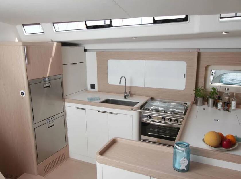 Sailing yacht First 53 On y va, built in 2023 is anchored in the Lavrion - Olympic Marine, Athens area/Saronic/Peloponese, Greece. It has 3 + 1 cabins, can accommodate 6 + 2 people and has 3 + 1 toilets. Bed linen and kitchen equipment are included in the price.