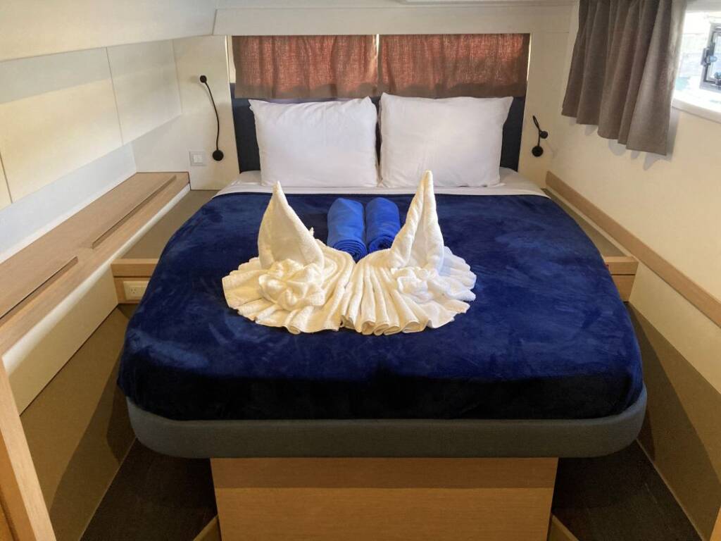Fountaine Pajot Tanna 47 Maestro Aquaphoria 02/05/2026 - 09/05/2026 Home Back to Search Results Fountaine Pajot Tanna 47 Maestro Aquaphoria Catamaran Fountaine Pajot Tanna 47 Maestro Aquaphoria, built in 2025 is anchored in the St. Thomas, Frenchtown Marina, US- Virgin Islands, United States Virgin Islands. It has 3 cabins, can accommodate 6 people and has 3 toilets. Bed linen and kitchen equipment are included in the price. Highlights Experience Aquaphoria with a 2025 FP47 Tanna: Your Ultimate Charter Adventure Awaits! Step aboard Aquaphoria, a sailing catamaran designed to deliver unparalleled luxury and performance on the water. This exceptional vessel is more than just a boat—it's a gateway to aquatic euphoria. After otoring out of the harbor into open water, raising the sails, you catch the wind and are off and sailing. Once underway, you turn off the motors and there is a simultaneous feeling of peacefulness and adventure. Your eyes are on the horizon and the open water, and you hear nothing but the waves lapping the hull. That feeling is Aquaphoria. Whether you're planning a serene escape or an exhilarating adventure Aquaphoria provides the perfect blend of lavish comfort and style. The panoramic windows flood the salon with natural light, while the spacious cockpit and flybridge offer unrivaled views of your breathtaking surroundings. Every detail of this catamaran is meticulously crafted to enhance your experience which includes air conditioning, generator, expansive solar panels, a hydraulic swim platform, underwater lights, freshwater maker, built-in plancha grill, start-of-the art navigation systems and an upgraded dingy with steering helm. Discover a world of elegance and adventure, where every moment on board is infused with the pure bliss of Aquaphoria Download PDF Yacht ID 6916 Charter Bases St. Thomas, Frenchtown Marina, United States Virgin Islands Charter Types Catamaran Yacht brand Fountaine Pajot Yacht Model Fountaine Pajot Tanna 47 Maestro Yacht name Aquaphoria Production year 2025 Length 46 ft Beam 25 ft Draft 1.20 m Engine 2 x 60 hp Cabins 3 Berths 6 WC/Shower 3 Fuel tank 920 l Water tank 700 l Equipment Comfort Sundeck cushions Deck Bimini top Cockpit fridge Cockpit table Cockpit/stern, outside shower Dinghy with outboard engine Electric anchor windlass Flybridge Grill/Barbecue/Plancha Hydraulic lifting swimming platform Sprayhood Teak cockpit Entertainment Fusion radio Indoor speakers Outdoor speakers Starlink TV Underwater lights Galley Freezer Ice maker Kitchen utensils (Galley equipment, cutlery) Microwave Oven Refrigerator Stove Interior Electric toilet Navigation Autopilot GPS chart plotter - cockpit Wind/speed/depth instruments Safety Black Water Tank VHF radio Sails Electric winch Lazy bag Lazy jacks Yacht electrics 110V socket Air Conditioning Generator Inverter Shore power connection Solar panels USB sockets Watermaker - desalinator Services Bahamas foreign charter tax (Obligatory) 0 € Payable now per booking Bahamas foreign charter tax (Obligatory) 0 € Payable now per booking Bahamas Taxes (Obligatory) 0 € Payable now per booking Bahamas Taxes (Obligatory) 0 € Payable now per booking Base expenses - marina fees (Obligatory) 0 € $100 for a daysail - Payable now per booking Base expenses - marina fees (Obligatory) 0 € $100 for a daysail - Payable now per booking Belize Taxes (Obligatory) 0 € Payable now per booking Belize Taxes (Obligatory) 0 € Payable now per booking Cancellation insurance (Obligatory) 200 € Payable now per booking Cancellation insurance (Obligatory) 200 € Payable now per booking Credit card payments 3% surcharge (Obligatory) 0 € Payable now per booking Credit card payments 3% surcharge (Obligatory) 0 € Payable now per booking Cruising tax (Obligatory) 4 € Payable at the base per guest/day Cruising tax (Obligatory) 4 € Payable at the base per guest/day Dinghy (Obligatory) 45 € Payable now per day Dinghy (Obligatory) 45 € Payable now per day DRA (Obligatory) 50 € $100 for a daysail - Payable now per day DRA (Obligatory) 50 € Payable now per day DRA (Obligatory) 50 € Payable now per day DRA (Obligatory) 50 € Payable now per day DRA (Obligatory) 50 € Payable now per day DRA (Obligatory) 50 € $100 for a daysail - Payable now per day DRA (Obligatory) 50 € Payable now per day DRA (Obligatory) 50 € Payable now per day DRA (Obligatory) 50 € Payable now per day DRA (Obligatory) 50 € Payable now per day Express Service (Obligatory) 75 € Fuel cost - Payable now per day Express Service (Obligatory) 100 € Labor cost - Payable now per booking Express Service (Obligatory) 75 € Fuel cost - Payable now per day Express Service (Obligatory) 100 € Labor cost - Payable now per booking Final cleaning (Obligatory) 250 € Payable now per booking Final cleaning (Obligatory) 275 € Payable now per booking Final cleaning (Obligatory) 285 € Payable now per booking Final cleaning (Obligatory) 250 € Payable now per booking Final cleaning (Obligatory) 275 € Payable now per booking Final cleaning (Obligatory) 285 € Payable now per booking Florida sales tax (Obligatory) 0 € Payable now per booking Florida sales tax (Obligatory) 0 € Payable now per booking Maryland Amusement Tax 5% (Obligatory) 0 € Payable now per booking Maryland Amusement Tax 5% (Obligatory) 0 € Payable now per booking Maryland State Tax 6% (Obligatory) 0 € Payable now per booking Maryland State Tax 6% (Obligatory) 0 € Payable now per booking National parks permit (Obligatory) 25 € Payable at the base per booking National parks permit (Obligatory) 25 € Payable at the base per booking Outboard fuel & Gas (Obligatory) 40 € Dinghy Fuel - Payable now per booking Outboard fuel & Gas (Obligatory) 50 € Dinghy Fuel - Payable now per booking Outboard fuel & Gas (Obligatory) 40 € Dinghy Fuel - Payable now per booking Outboard fuel & Gas (Obligatory) 50 € Dinghy Fuel - Payable now per booking Surcharge (Obligatory) 50