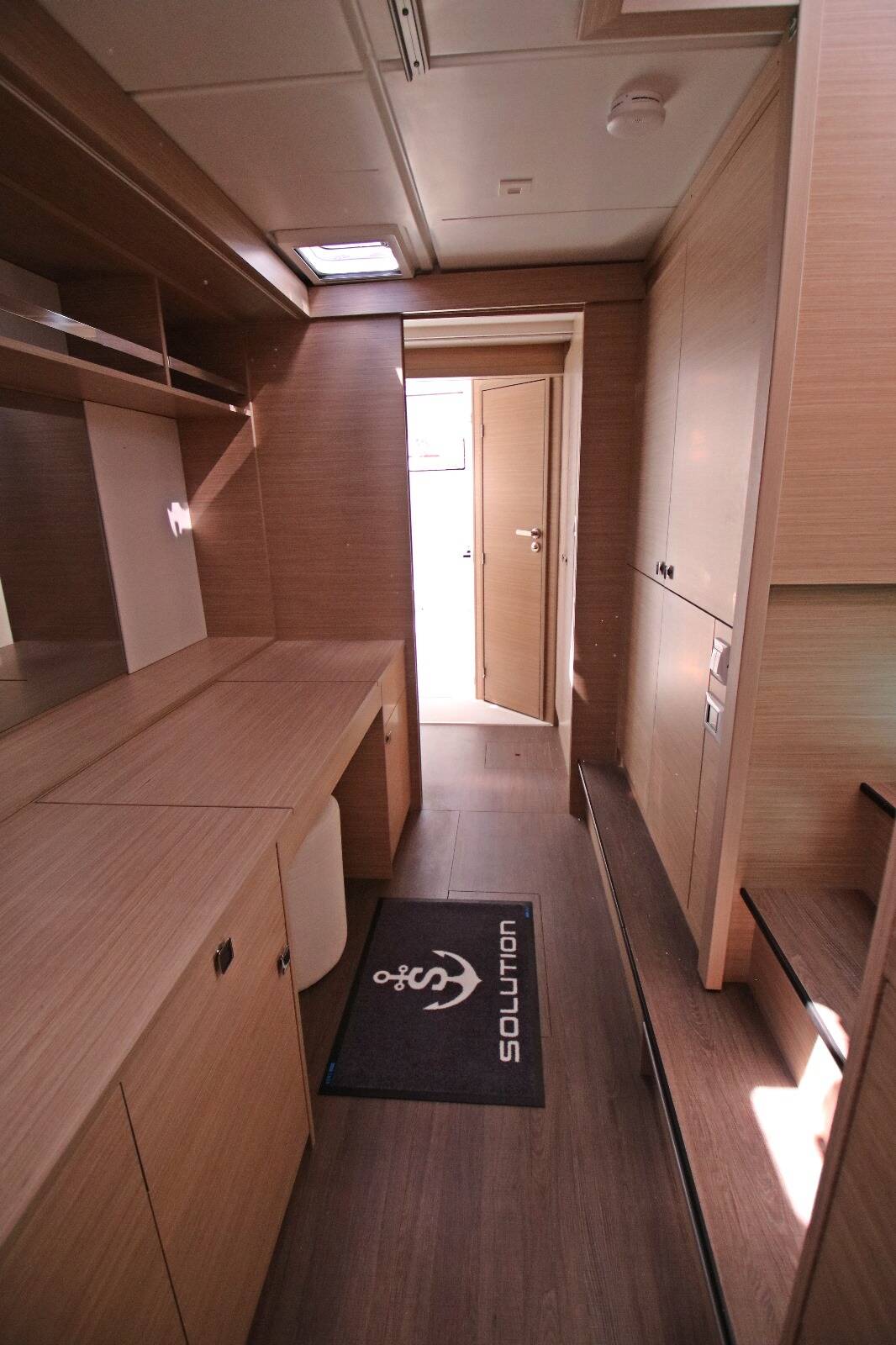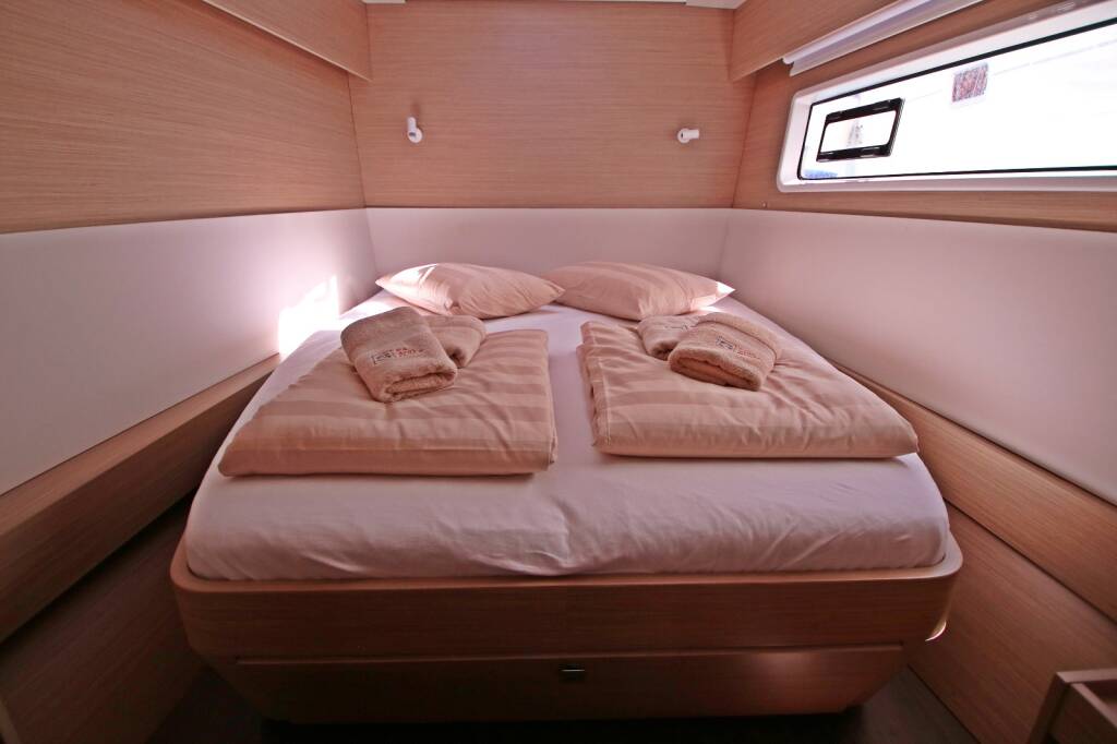 Lagoon 43 Solution 25/04/2026 - 02/05/2026 Home Back to Search Results Lagoon 43 Solution Catamaran Lagoon 43 Solution, built in 2025 is anchored in the Marina Frapa, Rogoznica, Šibenik region, Croatia. It has 3 + 2 cabins, can accommodate 6 + 1 + 2 people and has 3 toilets. Bed linen and kitchen equipment are included in the price. Highlights The Lagoon 43 "Solution" (3 cabins + 1 skipper cabin) is a 3-cabin version for up to 9 people. A comfortable owner’s cabin is located on the starboard side. Each of the 3 cabins has a double bed and a private bathroom/shower on the opposite side. An additional sleeping option is available in the skipper’s cabin. The "Solution" is equipped with an inverter and air conditioning for hot days. Standard features include a full-batten mainsail, a genoa, a bimini top, a cockpit enclosure, an autopilot, a sprayhood, heating, and a GPS chart plotter in the cockpit. A Nespresso coffee machine and an inverter are also provided. Our yachts are equipped with the C.I.G.O. Charter Information Guide Online. Unlimited internet, a dinghy, and an outboard motor are included in the charter price. Download PDF Yacht ID 6939 Charter Bases Marina Frapa, Rogoznica, Croatia Charter Types Catamaran Yacht brand Lagoon Yacht Model Lagoon 43 Yacht name Solution Production year 2025 Length 45 ft Beam 25 ft Draft 1.40 m Engine 2 x 57 hp Cabins 3 + 2 Berths 6 + 1 + 2 WC/Shower 3 Fuel tank 570 l Water tank 630 l Hull color WHITE Equipment Comfort Cockpit cushions Sundeck cushions Deck Anchor line Anchor swivel Bimini top Black ball Black conus Boat hook Bosun's chair (Safe seat) (boatswain's chair) Canister for water Chairs Cockpit full tent Cockpit table Cockpit table with light Cockpit/stern, outside shower Davit Dinghy Electric anchor windlass Fenders Gangway Jerry cans for diesel Main anchor Mooring ropes Plastic bucket Remote control for anchor winch with chain counter at helm Round/globular fender Spare anchor (Reserve, Auxiliary anchor) Sprayhood Spring line Water hose Entertainment Outdoor speakers Radio Underwater lights Galley Hot water Kitchen utensils (Galley equipment, cutlery) NESPRESSO coffee machine Refrigerator Stove Interior Barometer Electric fans in cabins Electric toilet Lowerable salon table Navigation AIS Autopilot GPS GPS chart plotter Hand bearing compass Harbour guides Logge/Lot/Speed/Wind Navigation (Nautical) charts and nautical guide Navigation set Parallel ruler Radar Radar reflector Spyglass Windex Safety Distress signals Fire extinguisher First aid kit Flashlight Fog horn Life belts (Safety harness) Life buoy + Flashing light Life jackets Liferaft Set of tools VHF radio Wire (shroud) cutter Sails Electric genoa winch Lazy bag Yacht electrics Air Conditioning Battery charger Generator Heating Inverter Shore connection 220 V USB sockets Services Permit (Obligatory) 430 € Incl. In price: Final cleaning, Starter pack: Washing-up liquid, sponge, tea towel, Wettex, toilet paper, 1 set/bed line person, towel set per person, fuel gas bottle, Hygienic Pack ( 4x body lotion 30ml,4xShower gel 4x shampoo 4x Hard soap ) - Payable at the base per booking WI-FI Internet connection on boat (Obligatory) 0 € UNLIMITED - Payable at the base per booking Deposit insurance 300 € +100 EUR refundable deposit (CASH ONLY) - Payable at the base per booking Early Check in 250 € Check-in 1:00-2:00 pm max. 4 yachts - Payable at the base per booking Extra cleaning 200 € Payable at the base per booking Hostess 180 € The hostess is an independent service provider, with charter company solely as an intermediary. Payment for the services is to be made directly to the hostess at start of the charter. Please note that hostess requires a dedicated cabin for the duration of the charter. Additionally, it is the charterer's responsibility to provide meals for the hostess throughout the charter period. - Payable at the base per day + food Pet on board 100 € Payable at the base per booking Skipper 200 € Driving boat and dinghy, responsible for the crew, making reservations in the restaurants.The skipper is an independent service provider, with charter company solely as an intermediary. Payment for the services is to be made directly to the skipper at start of the charter. Please note that skipper requires a dedicated cabin for the duration of the charter. Additionally, it is the charterer's responsibility to provide meals for the skipper throughout the charter period. - Payable at the base per day + food Transfer 0 € price on daily base - Payable at the base per booking Additional Extras Beach towel 5 € Payable at the base per booking Extra bedlinen 5 € 1 set/person - Payable at the base per booking Extra towels 5 € 1 Set already included - Payable at the base per booking Grill/Barbecue/Plancha 100 € Payable at the base per week Ice maker 100 € Payable at the base per week Outboard engine 0 € included in price - Payable at the base per week Railing net (Safety net) 120 € not available for all yachts - Payable at the base per booking Snorkeling equipment 35 € mask, flippers and snorkel - Payable at the base per week Stand up paddle (SUP) 120 € Payable at the base per week Yacht Base Marina Frapa, Rogoznica, Croatia April 2026 Calendar -22% 18.04. - 25.04.2026 2.649 € 3.400 € -22% 25.04. - 02.05.2026 3.116 € 4.000 € May 2026 Calendar -22% 02.05. - 09.05.2026 3.272 € 4.200 € 09.05. - 16.05.2026 Send Inquiry -22% 16.05. - 23.05.2026 4.518 € 5.800 € -22% 23.05. - 30.05.2026 5.219 € 6.700 € -22% 30.05. - 06.06.2026 5.765 € 7.400 € June 2026 Calendar 06.06. - 27.06.2026 Send Inquiry 20.06. - 27.06.2026 Send Inquiry -22% 27.06. - 04.07.2026 6.855 € 8.800 € July 2026 Calendar 04.07. - 11.07.2026 Send Inquiry -22% 11.07. - 18.07.2026 7.089 € 9.100 € -22% 18.07. - 25.07.2026 7.089 € 9.100 € -22% 25.07. - 01.08.2026 7.089 € 9.100 € August 2026 Calendar 01.08. - 08.08.2026 Send Inquiry 08.08. - 15.08.2026 Send Inquiry 15.08.
