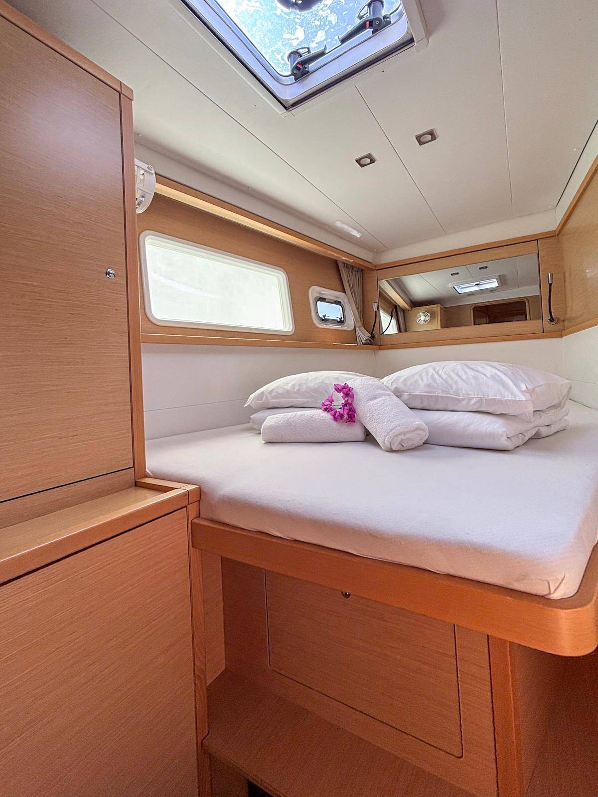 Lagoon 450 F Red Twin 25/04/2026 - 02/05/2026 Home Back to Search Results Lagoon 450 F Red Twin Catamaran Lagoon 450 F Red Twin, built in 2016 is anchored in the Marina Kremik, Primosten, Šibenik region, Croatia. It has 4 + 2 cabins, can accommodate 8 + 2 + 2 people and has 4 toilets. Bed linen and kitchen equipment are included in the price. Download PDF Yacht ID 1210 Charter Bases Marina Kremik, Primosten, Croatia Charter Types Catamaran Yacht brand Lagoon Yacht Model Lagoon 450 F Yacht name Red Twin Production year 2016 Number of rudder blades 2 Length 46 ft Beam 26 ft Draft 1.30 m Engine 2 x 57 hp Cabins 4 + 2 Berths 8 + 2 + 2 Max Persons 12 WC/Shower 4 Fuel tank 1000 l Water tank 1040 l Equipment Deck Anchor chain counter Anchor with chain Anchor with rope Bilge pump - Mechanic Bimini top Black ball Black conus Boat hook Bosun's chair (Safe seat) (boatswain's chair) Canister for water Cockpit table Cockpit/stern, outside shower Dinghy (byboat) pump Dinghy with outboard engine Electric anchor windlass Jerry cans for fuel Mooring ropes Round/globular fender Spotlight / Headlights Water hose Winch handles Entertainment Fusion radio Outdoor speakers Galley Gas bottles Gas cookers Hot water Kitchen utensils (Galley equipment, cutlery) NESPRESSO coffee machine Oven Refrigerator Interior Electric fans in cabins Electric toilet Navigation Autopilot Binoculars Echosounder/Depthsounder GPS chart plotter Hand bearing compass Harbour guides Nautical charts Navigation set Radar reflector Speedometer (Speed log) Wind instrument/Anemometer Safety Distress flare box Fire extinguisher First aid kit Flashlight Fog horn Inflatable lifejacket Life belts (Safety harness) Life buoy + Flashing light Life jackets Liferaft Set of tools VHF radio Sails Electric winch Lazy bag Yacht electrics Air Conditioning Battery charger Bilge pump - Electric Generator Heating Service batteries Start battery Services Comfort pack PREMIUM (Obligatory) 600 € includes: 1 bed linen (per person on crew list), 1 towels (per person on crew list), 2 kitchen towels, 2 cooking gas, 1 dish liquid + 1 sponge, 1 small soap + 1 wc paper/toilet), outboard engine, WI-FI (5GB/Day) welcome pack (1 bottle Prosecco, coffee capsules, extra virgin olive oil 0,1L), snorkeling mask final cleaning 1 SUP - Payable at the base per booking Outboard engine (Obligatory) 0 € Free of charge - Payable at the base per booking Outboard engine (Obligatory) 0 € 20HP; Free of charge - Payable at the base per booking WI-FI Internet connection on boat (Obligatory) 0 € 35 GB per week=included in price - Payable at the base per booking Deposit insurance 270 € + 400€ refundable - Payable at the base per booking Early boarding/check-in 90 € BRONZE at 15:00H - Payable at the base per booking Early boarding/check-in 150 € SILVER at 13:30H - Payable at the base per booking Early boarding/check-in 250 € GOLD at 12:00H - Payable at the base per booking Extra cleaning 200 € Payable at the base per booking Hostess 1.400 € Payable at the base per week + food Pet on board 150 € on request - Payable at the base per booking Skipper 1.500 € Payable at the base per week + food Additional Extras Beach towel 8 € Payable at the base per piece Extra bedlinen 10 € Payable at the base per set Extra towels 5 € Payable at the base per set Kayak 150 € additional deposit 250 EUR, order in advance due to limited quantity of equipment - Payable at the base per week Railing net (Safety net) 120 € not available for all yachts - Payable at the base per booking Stand up paddle (SUP) 100 € Payable at the base per week Yacht Base Marina Kremik, Primosten, Croatia April 2026 Calendar -25% 18.04. - 25.04.2026 1.744 € 2.325 € -25% 25.04. - 02.05.2026 2.093 € 2.790 € May 2026 Calendar -27% 02.05. - 09.05.2026 2.037 € 2.790 € -27% 09.05. - 16.05.2026 2.376 € 3.255 € -27% 16.05. - 23.05.2026 3.055 € 4.185 € 23.05. - 30.05.2026 Send Inquiry -27% 30.05. - 06.06.2026 3.598 € 4.929 € June 2026 Calendar 06.06. - 13.06.2026 Send Inquiry 13.06. - 20.06.2026 Send Inquiry 20.06. - 27.06.2026 Send Inquiry 27.06. - 04.07.2026 Send Inquiry July 2026 Calendar 04.07. - 11.07.2026 Send Inquiry 11.07. - 18.07.2026 Send Inquiry 18.07. - 25.07.2026 Send Inquiry 25.07. - 01.08.2026 Send Inquiry August 2026 Calendar 01.08. - 08.08.2026 Send Inquiry 08.08. - 15.08.2026 Send Inquiry 15.08. - 22.08.2026 Send Inquiry 22.08. - 12.09.2026 Send Inquiry September 2026 Calendar 05.09. - 12.09.2026 Send Inquiry 12.09. - 19.09.2026 Send Inquiry 19.09. - 26.09.2026 Send Inquiry 26.09. - 03.10.2026 Send Inquiry October 2026 Calendar -18% 03.10. - 10.10.2026 1.917 € 2.325 € -18% 10.10. - 17.10.2026 1.917 € 2.325 € -18% 17.10. - 24.10.2026 1.687 € 2.046 € -18% 24.10. - 31.10.2026 1.687 € 2.046 € -18% 31.10. - 07.11.2026 1.687 € 2.046 € November 2026 Calendar -18% 07.11. - 14.11.2026 1.687 € 2.046 € -18% 14.11. - 21.11.2026 1.687 € 2.046 € -18% 21.11. - 28.11.2026 1.687 € 2.046 € -18% 28.11. - 05.12.2026 1.687 € 2.046 € December 2026 Calendar -18% 05.12. - 12.12.2026 1.687 € 2.046 € -18% 12.12. - 19.12.2026 1.687 € 2.046 € -18% 19.12. - 26.12.2026 1.687 € 2.046 € Price Summary Share on Facebook Share on X Share on LinkedIn Yacht rental price 0 € Discount 0% 0 € Discounted yacht price Not available Obligatory Extras - € Additional Extras Total 600 € Note: Services and Extra Equipment can also be selected on the Checkout Page. So be sure to click Book Now button if you want to include options we offer with this charter.