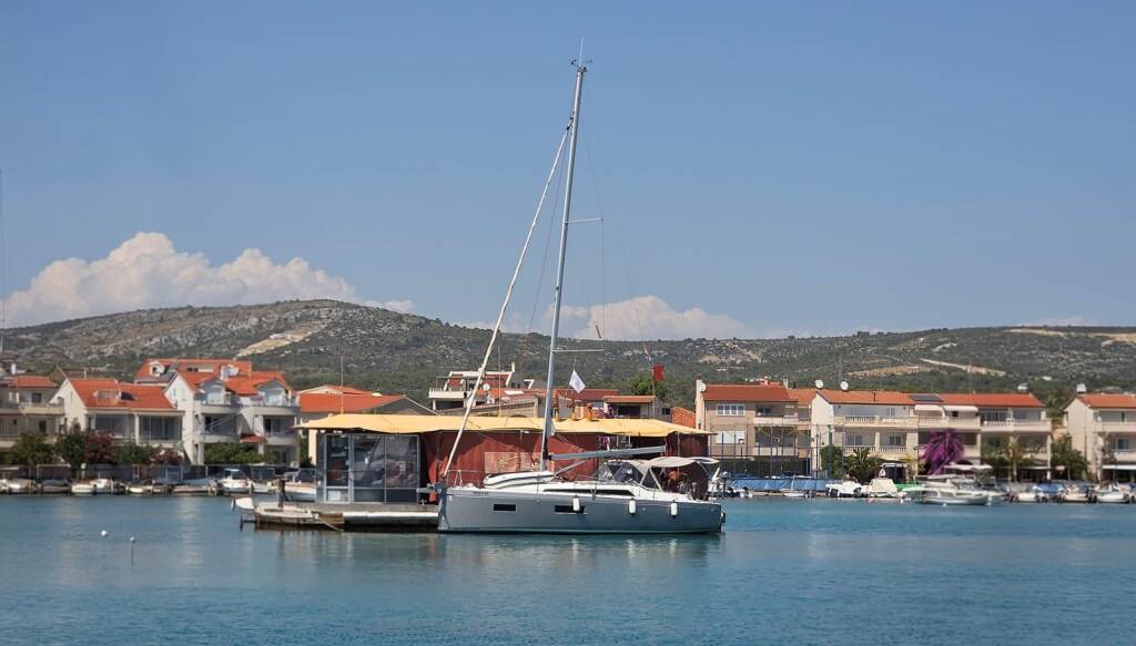 Oceanis 34.1 Loy 02/05/2026 - 09/05/2026 Home Back to Search Results Oceanis 34.1 Loy Sailing yacht Oceanis 34.1 Loy, built in 2024 is anchored in the Marina Frapa, Rogoznica, Šibenik region, Croatia. It has 2 cabins, can accommodate 4 + 1 people and has 1 toilets. Bed linen and kitchen equipment are included in the price. Highlights Small but powerful - that's our Beneteau 34.1 Oceanis LOY. It is ideal for small crews such as 2 couples or a family with children. The interior of the Loy has been well thought out and, despite an overall length of 10.77 metres, offers enough space for a relaxing cruise along the Croatian coast or to the unspoilt islands. 2 cabins and a wet room with separate shower invite you to relax. Yacht Loy is well equipped with a bow thruster, inverter (2000W) , heating and under water lights (2026). The furling mainsail is easy to operate and there is also an electric winch on board. The Loy stands out not least because of her discreet grey hull but also because of her good sailing characteristics. Our yachts are equipped with C.I.G.O. Charter Information Guide Online. Unlimited internet, dinghy and outboard motor are included in the charter price. Download PDF Yacht ID 5470 Charter Bases Marina Frapa, Rogoznica, Croatia Charter Types Sailing yacht Yacht brand Beneteau Yacht Model Oceanis 34.1 Yacht name Loy Production year 2024 Length 35 ft Beam 12 ft Draft 2.00 m Engine 1 x 29 hp Cabins 2 Berths 4 + 1 WC/Shower 1 Fuel tank 130 l Water tank 360 l Equipment Comfort Cockpit cushions Deck Anchor line Anchor swivel Anchor winch remote control Bimini top Black ball Black conus Boat hook Bosun's chair (Safe seat) (boatswain's chair) Canister for water Cockpit table Cockpit/stern, outside shower Dinghy Dinghy (byboat) pump Electric anchor windlass Fenders Gangway Jerry cans for diesel Main anchor Mooring ropes Plastic bucket Round/globular fender Spare anchor (Reserve, Auxiliary anchor) Sprayhood Spring line Water hose Entertainment FUSION sound system Indoor speakers Outdoor speakers Radio Wireless Internet Router Galley Coffee machine Gas bottles Hot water Kitchen utensils (Galley equipment, cutlery) Refrigerator Interior Electric toilet Navigation Autopilot Binoculars Bow thruster GPS GPS chart plotter - cockpit Harbour guides Logge/Lot/Speed/Wind Navigation (Nautical) charts and nautical guide Navigation set Parallel ruler Radar reflector Spyglass Tridata Safety Distress signals EPIRB-Distress radio beacons Fire extinguisher First aid kit Flashlight Fog horn Life belts (Safety harness) Life buoy + Flashing light Life jackets Set of tools VHF radio Wire (shroud) cutter Sails Electric winch Yacht electrics Battery charger Heating Inverter Shore connection 220 V USB sockets Services Permit (Obligatory) 290 € Incl. In price: Final cleaning, Starter pack: Washing-up liquid, sponge, tea towel, Wettex, toilet paper, 1 set/bed line person, towel set per person, fuel gas bottle, Hygienic Pack ( 4x body lotion 30ml,4xShower gel 4x shampoo 4x Hard soap ) - Payable at the base per booking WI-FI Internet connection on boat (Obligatory) 0 € UNLIMITED - Payable at the base per booking Deposit insurance 260 € +100 EUR refundable deposit (CASH ONLY) - Payable at the base per booking Early Check in 250 € Check-in 1:00-2:00 pm max. 4 yachts - Payable at the base per booking Extra cleaning 200 € Payable at the base per booking Hostess 180 € The hostess is an independent service provider, with charter company solely as an intermediary. Payment for the services is to be made directly to the hostess at start of the charter. Please note that hostess requires a dedicated cabin for the duration of the charter. Additionally, it is the charterer's responsibility to provide meals for the hostess throughout the charter period. - Payable at the base per day + food Pet on board 100 € Payable at the base per booking Skipper 180 € Driving boat and dinghy, responsible for the crew, making reservations in the restaurants.The skipper is an independent service provider, with charter company solely as an intermediary. Payment for the services is to be made directly to the skipper at start of the charter. Please note that skipper requires a dedicated cabin for the duration of the charter. Additionally, it is the charterer's responsibility to provide meals for the skipper throughout the charter period. - Payable at the base per day + food Transfer 0 € price on daily base - Payable at the base per booking Additional Extras Beach towel 5 € Payable at the base per booking Extra bedlinen 5 € 1 set/person - Payable at the base per booking Extra towels 5 € 1 Set already included - Payable at the base per booking Grill/Barbecue/Plancha 100 € Payable at the base per week Ice maker 100 € Payable at the base per week Outboard engine 0 € included in price - Payable at the base per week Railing net (Safety net) 120 € not available for all yachts - Payable at the base per booking Snorkeling equipment 35 € mask, flippers and snorkel - Payable at the base per week Stand up paddle (SUP) 120 € Payable at the base per week Yacht Base Marina Frapa, Rogoznica, Croatia April 2026 Calendar 18.04. - 25.04.2026 Send Inquiry 25.04. - 02.05.2026 Send Inquiry May 2026 Calendar -24% 02.05. - 09.05.2026 1.140 € 1.500 € 09.05. - 16.05.2026 Send Inquiry -24% 16.05. - 23.05.2026 1.520 € 2.000 € -24% 23.05. - 30.05.2026 1.786 € 2.350 € 30.05. - 06.06.2026 Send Inquiry June 2026 Calendar 06.06. - 13.06.2026 Send Inquiry 13.06. - 26.06.2026 Send Inquiry 27.06. - 04.07.2026 Send Inquiry July 2026 Calendar -24% 04.07. - 11.07.2026 2.356 € 3.100 € 11.07. - 18.07.2026 Send Inquiry -24% 18.07. - 25.07.2026 2.546 € 3.350 € -24% 25.07. - 01.08.2026 2.546 € 3.350 € August 2026 Calendar 01.08. - 19.09.2026 Send Inquiry 29.08. - 05.09.2026 Send Inquiry September 2026 Calendar 05.09. - 12.09.2026 Send Inquiry 12.09. - 19.09.2026 Send Inquiry 19.09. - 26.09.2026 Send Inquiry 26.09. - 03.10.2026