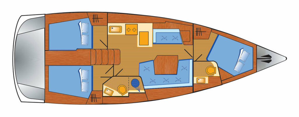 Oceanis 41.1 All Winds 27/06/2026 - 04/07/2026 Home Back to Search Results Oceanis 41.1 All Winds Sailing yacht Oceanis 41.1 All Winds, built in 2021 is anchored in the Marina Frapa, Rogoznica, Šibenik region, Croatia. It has 3 cabins, can accommodate 6 + 2 people and has 2 toilets. Bed linen and kitchen equipment are included in the price. Highlights Slatted base in all cabins, cockpit shower (hot/cold), electric anchor windlass with remote control, Hifi: Fusion with waterproof speakers in saloon and cockpit, transom protector, double berth in saloon, fridge opening from the front, storage space under the floor, oven with grill, extended saloon table Download PDF Yacht ID 1097 Charter Bases Marina Frapa, Rogoznica, Croatia Charter Types Sailing yacht Yacht brand Beneteau Yacht Model Oceanis 41.1 Yacht name All Winds Production year 2021 Number of rudder blades 1 Length 41 ft Beam 14 ft Draft 2.19 m Engine 1 x 44 hp Cabins 3 Berths 6 + 2 WC/Shower 2 Fuel tank 200 l Water tank 570 l Equipment Comfort Cockpit cushions Deck Anchor light Anchor with chain Bathing platform Bimini top Boat hook Cockpit table Cockpit/stern, outside shower Deck brush Electric anchor windlass Fenders Gangway Impeller Jerry cans for diesel Sailor's knife Sprayhood Swimming ladder Teak cockpit Entertainment Hi-Fi system Indoor speakers Mask and snorkel Outdoor speakers Radio Radio CD player, AUX input TV Wi-Fi Internet Galley Gas cookers Kitchen utensils (Galley equipment, cutlery) Oven Refrigerator Wine glasses Interior Barometer Clock Electric fans in cabins Electric toilet Foldable table Heater / Blower Indirect lighting in cabins and salon Safe Slatted frame Navigation AIS Autopilot Bow thruster Compass Composite steering wheels Echosounder/Depthsounder GPS chart plotter GPS chart plotter - cockpit Navigation (Nautical) charts and nautical guide Navigation/position Lights Radar reflector Triangles Windex Safety Black Water Tank Distress signals Emergency tiller Extra water tank Fire extinguisher First aid kit Flashlight Fog horn Lifelines Self inflating life vest VHF radio Sails Electric winch Gennaker-device Lazy jacks Yacht electrics 12V Socket Bilge pump - Electric Converter 220V/12V Heating Inverter Plug 220V, 12 V Shore connection 220 V Solar panels USB sockets Services Basic package for accommodation (Obligatory) 250 € Cash or with credit card (VISA, MASTER) Cleaning, made Bed linen, Permit, WiFi, Cooking gas, Rinsing set, Dinghy - Payable at the base per booking Basic package for accommodation (Obligatory) 250 € Cleaning, made Bed linen, Permit, WiFi, Cooking gas, Rinsing set, Dinghy / Cash - Payable at the base per booking Deposit insurance 200 € Cash / The customers still have to deposit 100,00 €. If there is no damage, they get the 100,00 € back. We do not require any prior information. The customer can take out insurance at check-in. - Payable at the base per booking Deposit insurance 200 € Cash / The customers still have to deposit 100,00 €. If there is no damage, they get the 100,00 € back. We do not require any prior information. The customer can take out insurance at check-in. - Payable at the base per booking Early Check in 150 € On request; from 13:00; Payable in cash at the base - Payable at the base per booking Early Check in 150 € On request; from 13:00; Payable in cash at the base - Payable at the base per booking Hostess 150 € + own cabin - Payable at the base per day + food Hostess 150 € + own cabin - Payable at the base per day + food Pet on board 140 € ONLY ON REQUEST!; Payable in cash at the base - Payable at the base per booking Pet on board 140 € ONLY ON REQUEST!; Payable in cash at the base - Payable at the base per booking Skipper 200 € On request; Free food, own cabin; Payable in cash at the base - Payable at the base per day Skipper 200 € On request; Free food, own cabin; Payable in cash at the base - Payable at the base per day Transfer 40 € Transfer from Marina Veruda (Pula Airport): The ride for 1-4 people costs €40. Payable in cash directly to the taxi driver. - Payable at the base one-way Transfer 50 € Transfer from Marina Veruda (Pula Airport): The ride for 5-8 people costs €50. Payable in cash directly to the taxi driver. - Payable at the base one-way Transfer 60 € Transfer to Marina Frapa (Split Airport) 1-2 people €60 Shopping stop for 1 hour: If you arrive by taxi from the airport and would like to stop at the supermarket, this is possible, but the driver will have to charge you for it: From June 1st to September 30th, the stop costs €50, and €20 during the off-season (applies to transfers booked through us). - Payable at the base one-way Transfer 60 € Transfer to Biograd: A trip from Zadar (up to 4 people) costs €60. - Payable at the base one-way Transfer 70 € Transfer from Punat (Rijeka Airport to Punat Marina): 1-4 people 70,- €. Each additional person costs an additional €15. Payable in cash directly to the taxi driver. - Payable at the base one-way Transfer 90 € Transfer to Biograd: A trip from Zadar (from 5 and up to 8 people) costs €90. - Payable at the base one-way Transfer 190 € Transfer to Biograd: The longer trip from Split (up to 4 people) costs €190. - Payable at the base one-way Transfer 225 € Transfer to Biograd: The longer trip from Split (from 5 and up to 8 people) costs €225. - Payable at the base one-way Transfer 75 € Transfer to Marina Frapa (Split Airport) 3-4 people €75 Shopping stop for 1 hour: If you arrive by taxi from the airport and would like to stop at the supermarket, this is possible, but the driver will have to charge you for it: From June 1st to September 30th, the stop costs €50, and €20 during the off-season (applies to transfers booked through us). - Payable at the base one-way Transfer 85 € Transfer to Marina Frapa (Split Airport) 5-8 people €85 Shopping stop for 1 hour: If you arrive by taxi from the airport and would like to stop at the supermarket, 
