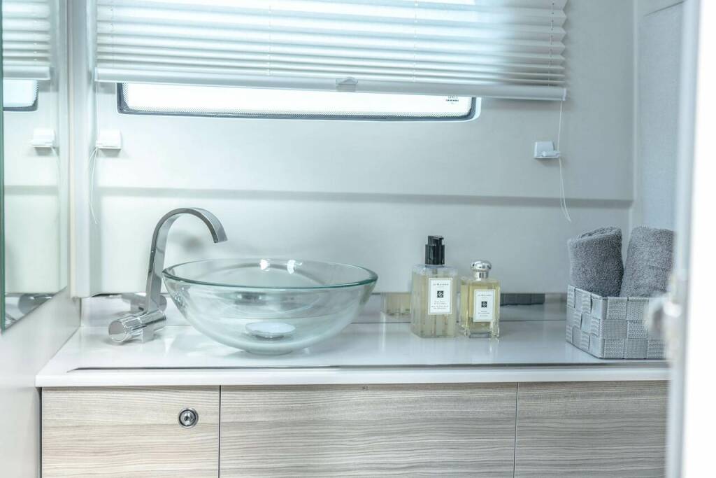 While anchored, indulge in complimentary Seabob rides and a plethora of water toys, or simply unwind on the sun-soaked rear sunbed. Open the stern-side extenders and create your own private island! Seek refuge from the sun under the expansive Bimini shade on the bow, ensuring your comfort at all times.